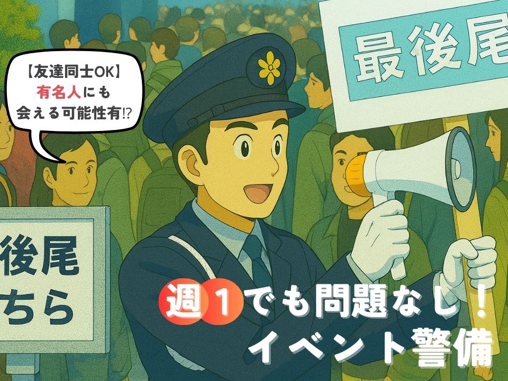 週1日~/土日祝のいずれかのみもOK!未経験歓迎!友達同士での応募・面接・勤務も大歓迎! 気になったら今すぐ応募を! 毎年、大学生中心に人気の案件! スポーツ大会やお祭りなど イベント運営のお手伝いをお願いします。 あなたの「空いてる日」勤務でOK! 週1日~OK…
