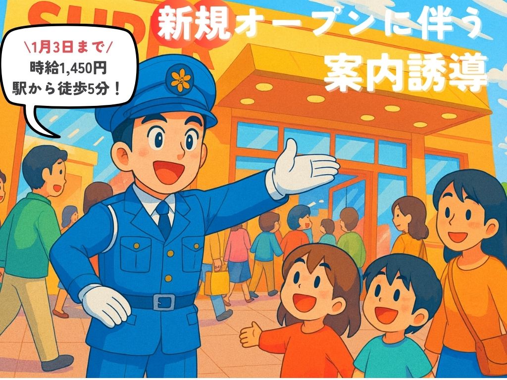 【オープニング案件・大募集!】 大型スーパーでの短期スタッフ募集! 歩行者のご案内や駐車場内での誘導 車両誘導・看板を持っての案内 資格や経験不要で どなたでもチャレンジできます! アルバイトデビューやシニア・ブランクある方も大歓迎です! 未経験の方でもしっかり…